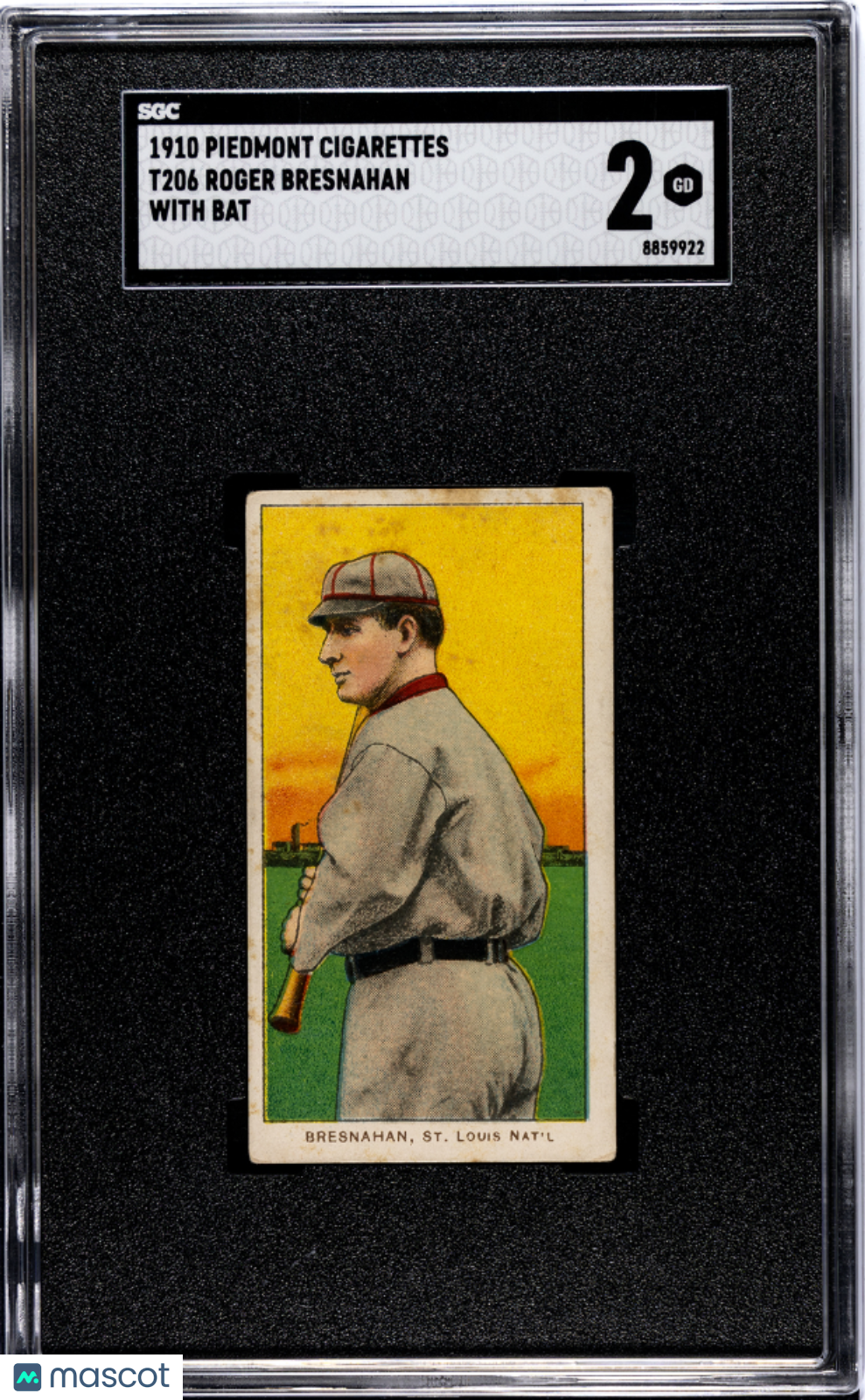 You are purchasing a 1910 Piedmont Cigarettes (T206) Roger Bresnahan With Bat SGC 2. You will receive the exact item in the photographs. Thank you for looking. Listed With Mascot.