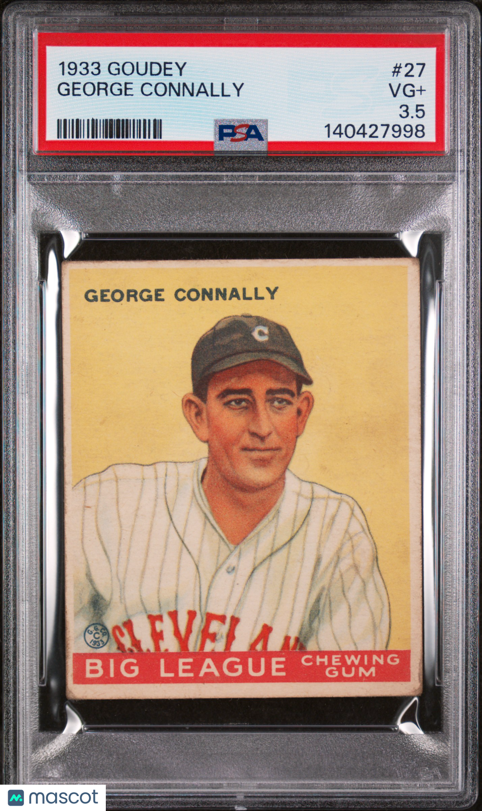 You are purchasing a 1933 Goudey George Connally #27 PSA 3.5. You will receive the exact item in the photographs. Thank you for looking. Listed With Mascot.