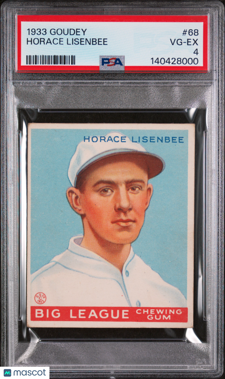 You are purchasing a 1933 Goudey Horace Lisenbee #68 PSA 4. You will receive the exact item in the photographs. Thank you for looking. Listed With Mascot.