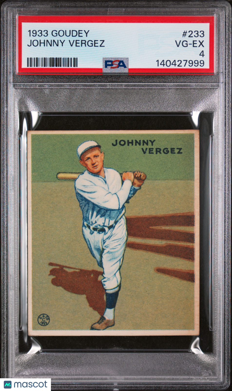 You are purchasing a 1933 Goudey Johnny Vergez #233 PSA 4. You will receive the exact item in the photographs. Thank you for looking. Listed With Mascot.