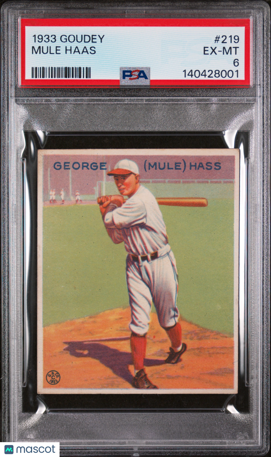 You are purchasing a 1933 Goudey Mule Haas #219 PSA 6. You will receive the exact item in the photographs. Thank you for looking. Listed With Mascot.