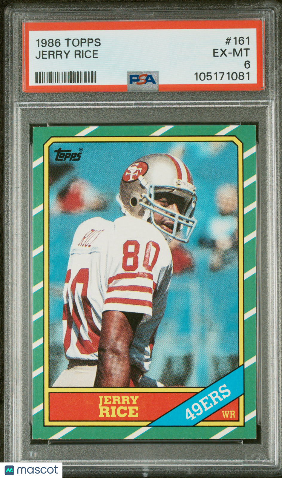 You are purchasing a 1986 Topps Jerry Rice #161 PSA 6. You will receive the exact item in the photographs. Thank you for looking. Listed With Mascot.