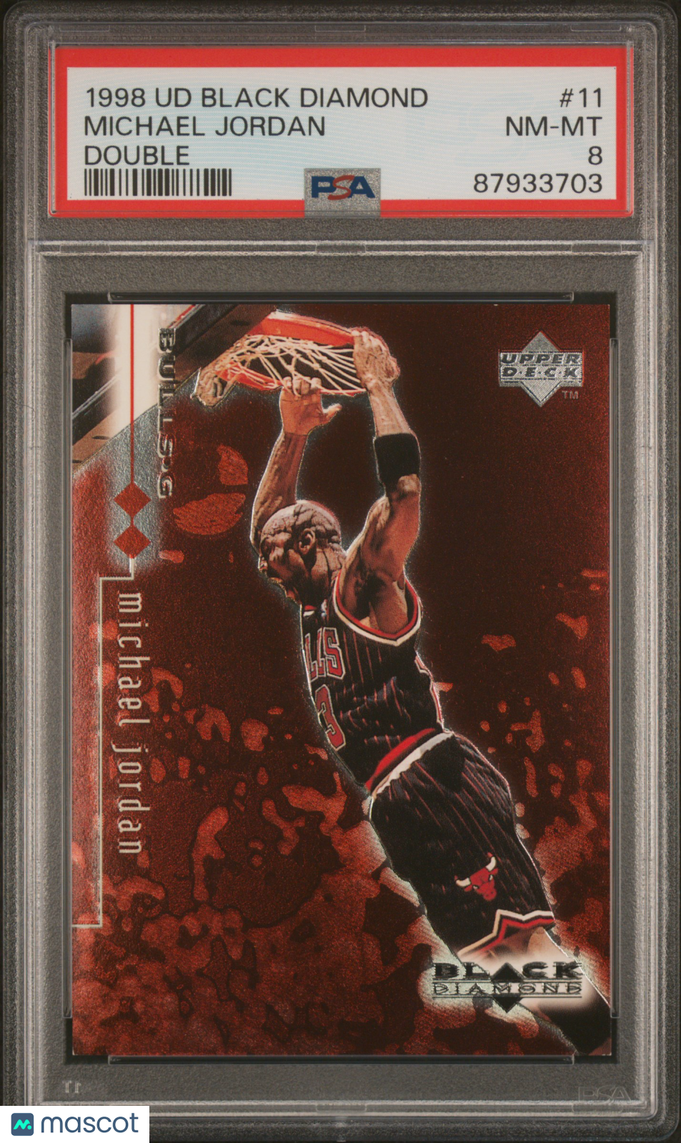 You are purchasing a 1998 Upper Deck Black Diamond Michael Jordan #11 Double PSA 8. You will receive the exact item in the photographs. Thank you for looking. Listed With Mascot.