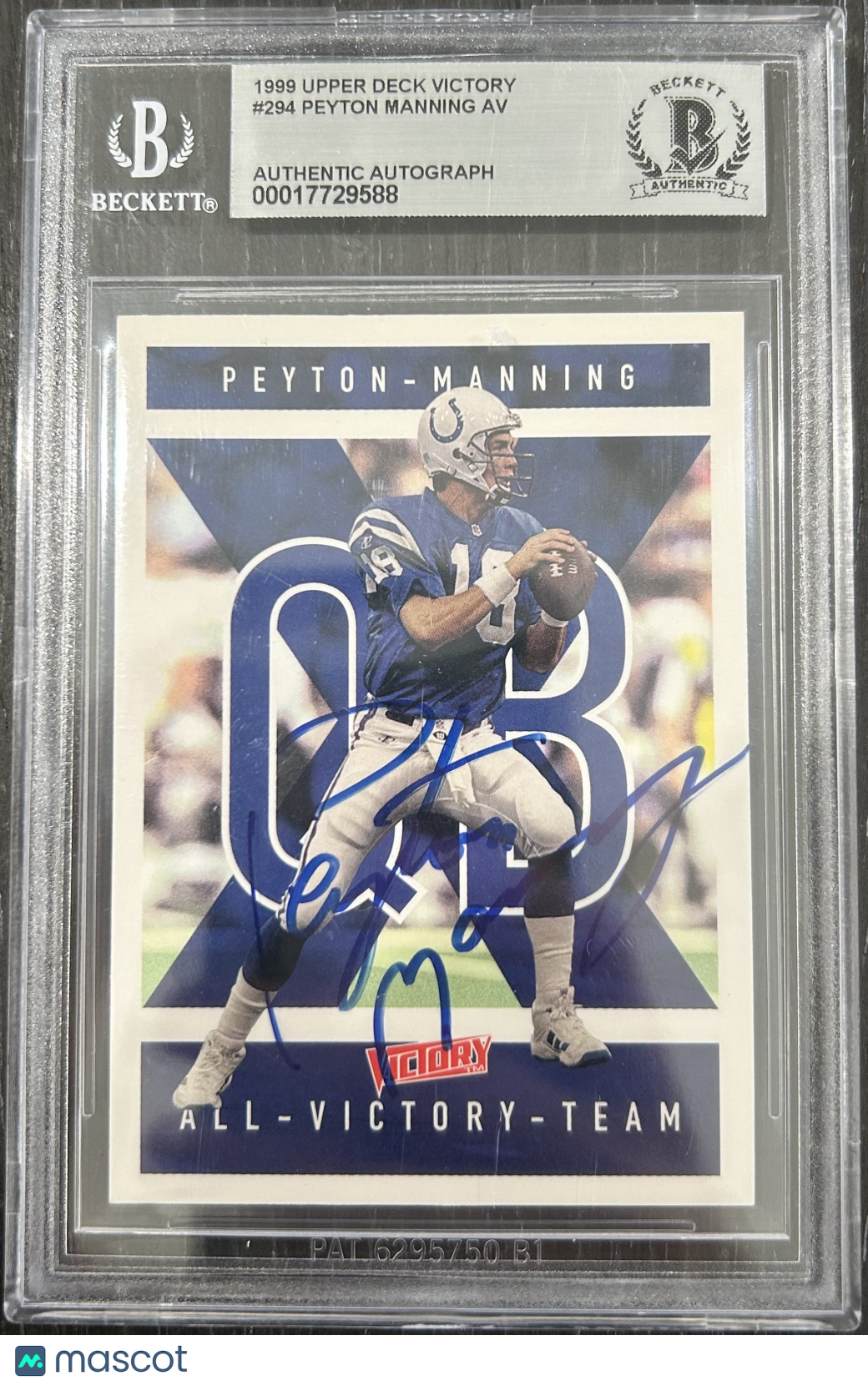 You are purchasing a 1999 Upper Deck Victory Peyton Manning AV #294 BGS 0. You will receive the exact item in the photographs. Thank you for looking. Listed With Mascot.