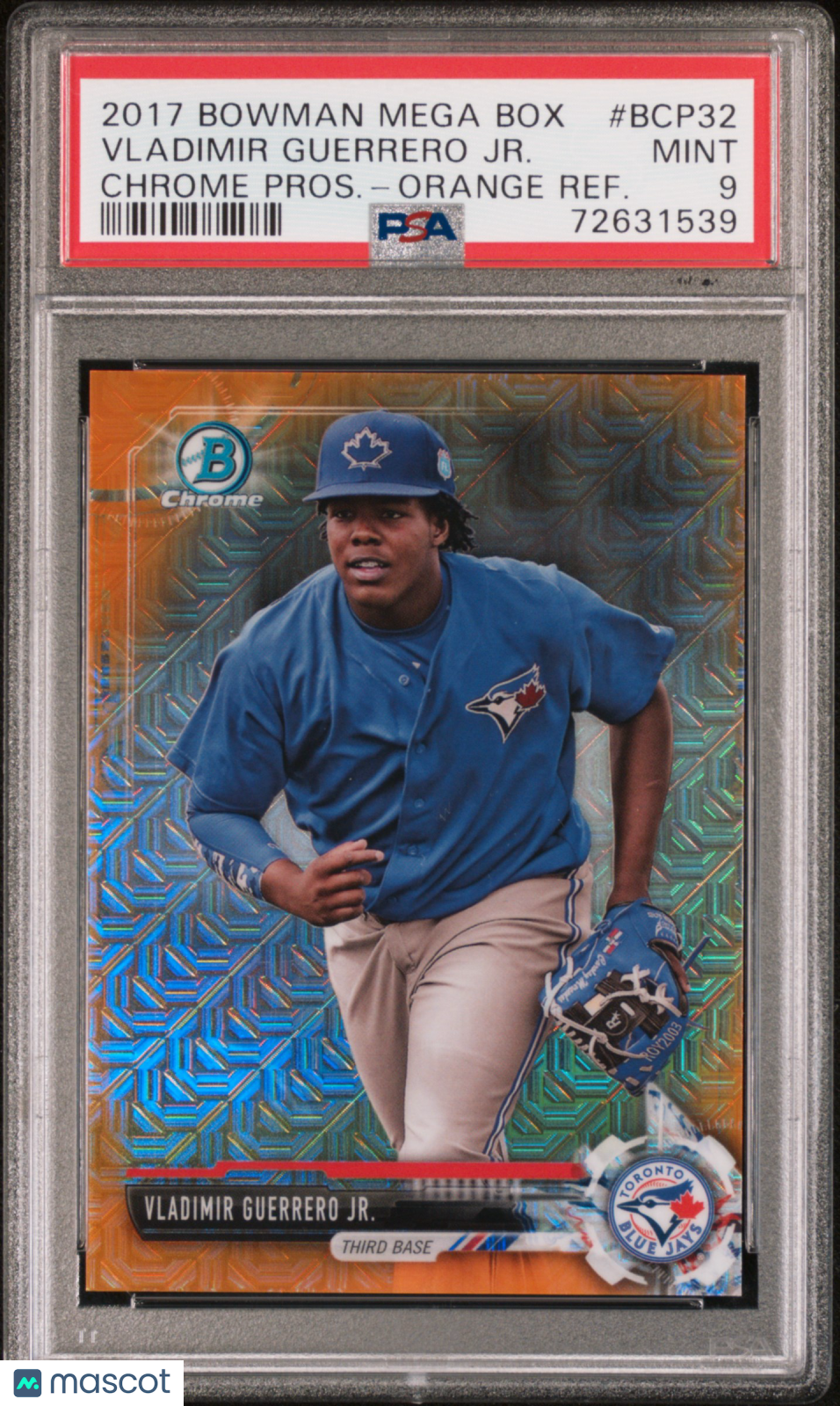 You are purchasing a 2017 Bowman Mega Box Chrome Prospects Vladimir Guerrero JR. #BCP32 Pros. Orange Refractor PSA 9. You will receive the exact item in the photographs. Thank you for looking. Listed With Mascot.