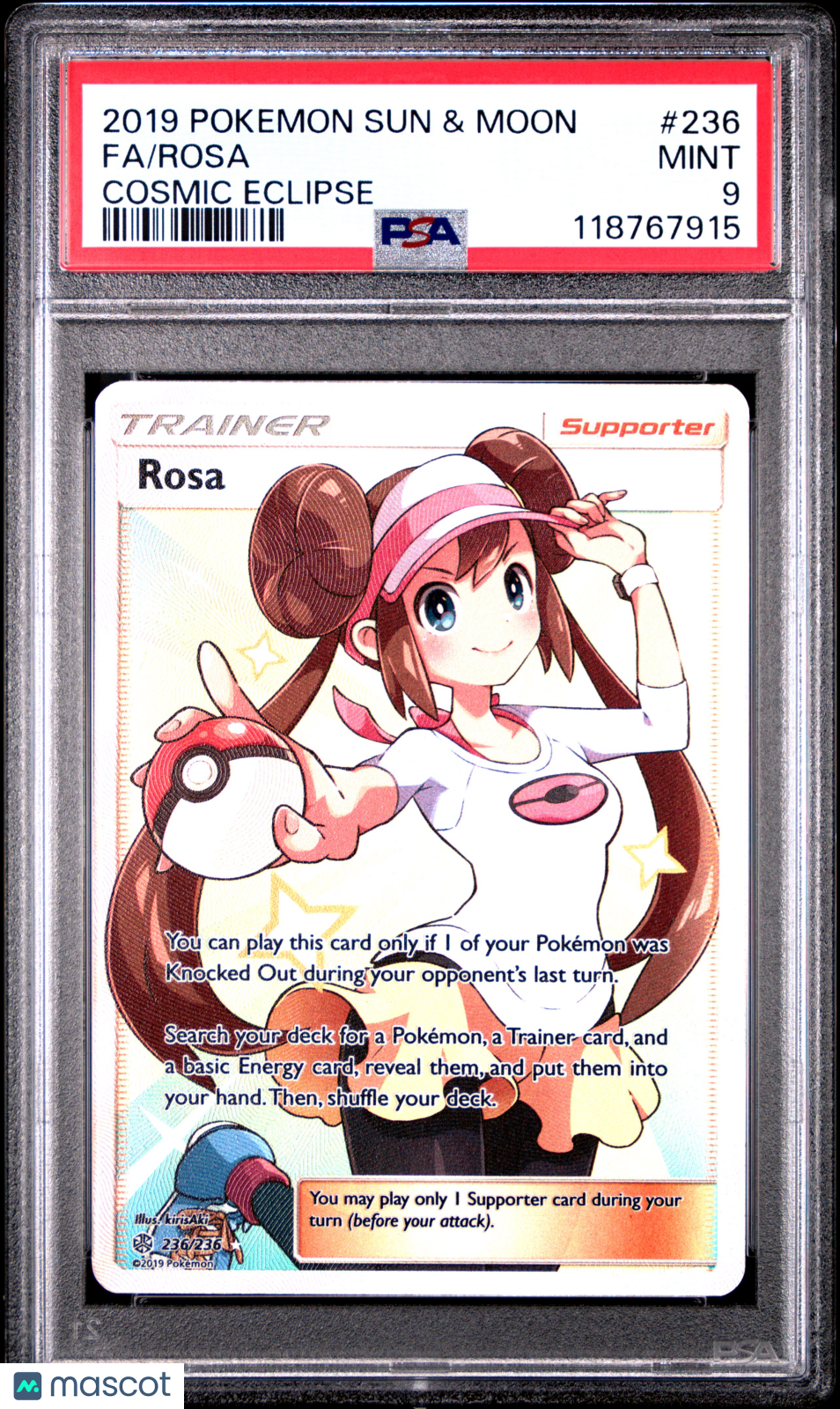 You are purchasing a 2019 Pokemon Sun & Moon Cosmic Eclipse Rosa #236 Fa Cosmic Eclipse PSA 9. You will receive the exact item in the photographs. Thank you for looking. Listed With Mascot.