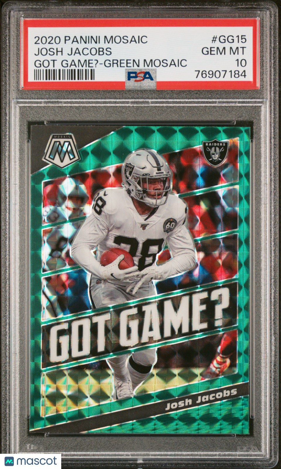 2020 Panini Mosaic Got Game? Josh Jacobs #GG15 Green PSA 10