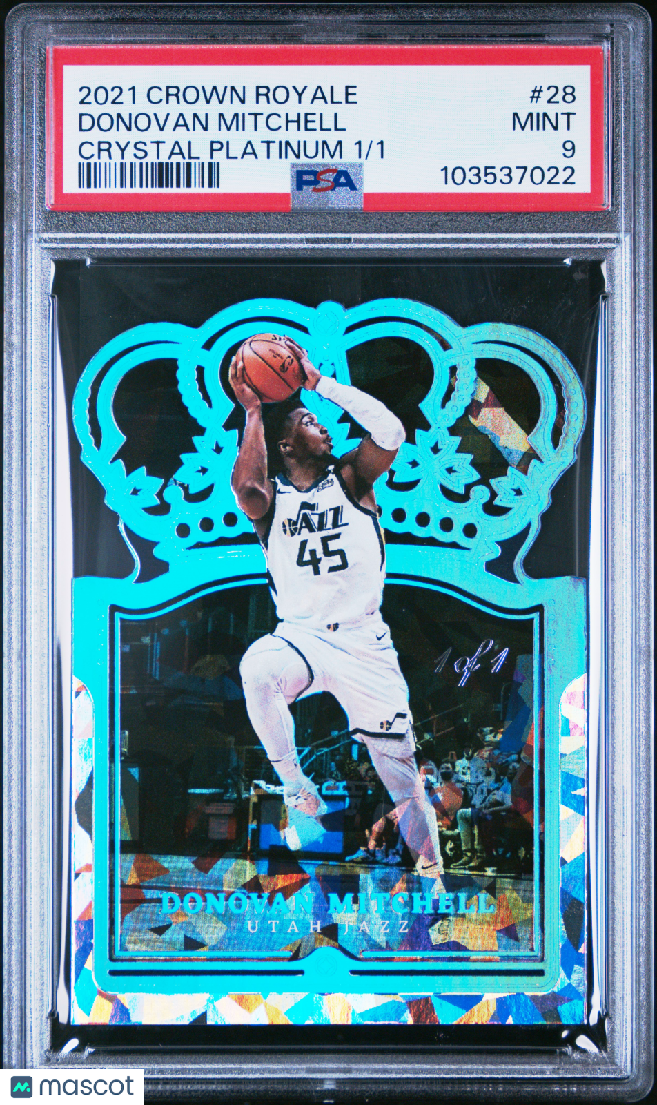 2021 Panini Crown Royale Donovan Mitchell #28 Crystal Platinum 1/1 PSA 9