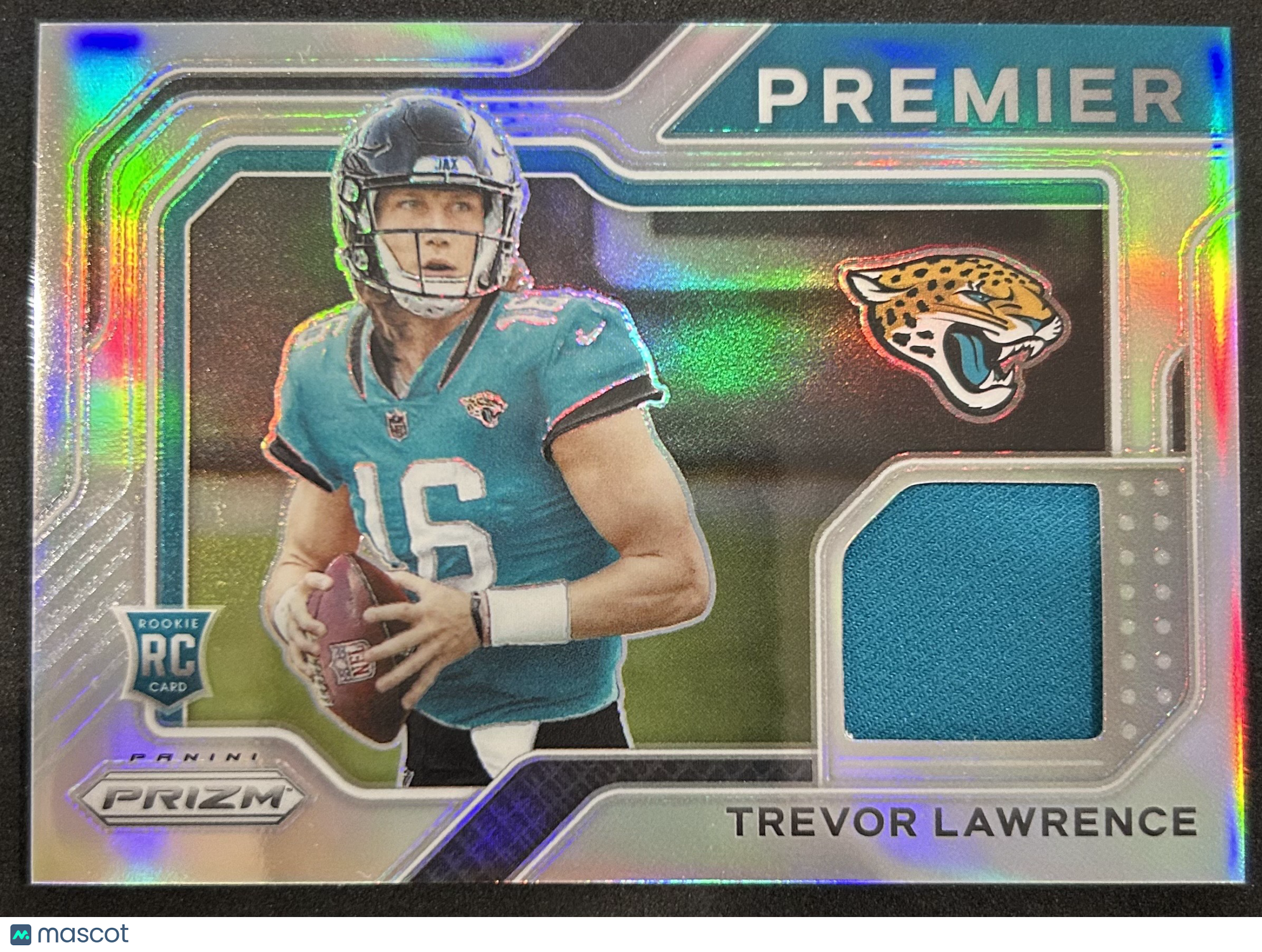 You are purchasing a 2021 Panini Prizm Premier Trevor Lawrence #PJ-1 RC Patch. You will receive the exact item in the photographs. Thank you for looking. Listed With Mascot.