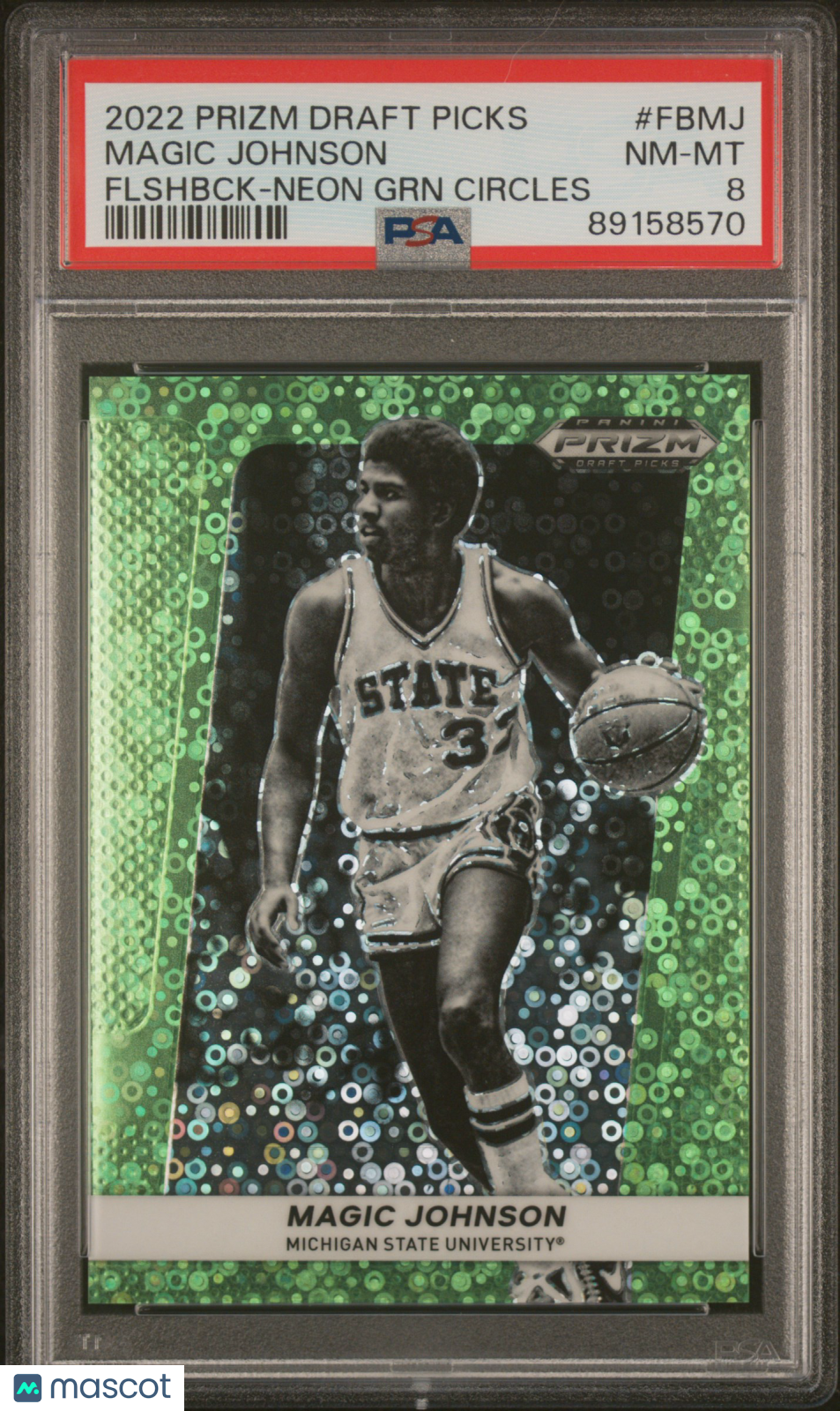 2022-23 Panini Prizm Draft Picks Flashback Magic Johnson #FBMJ Flshbck Neon GRN Circles PSA 8
