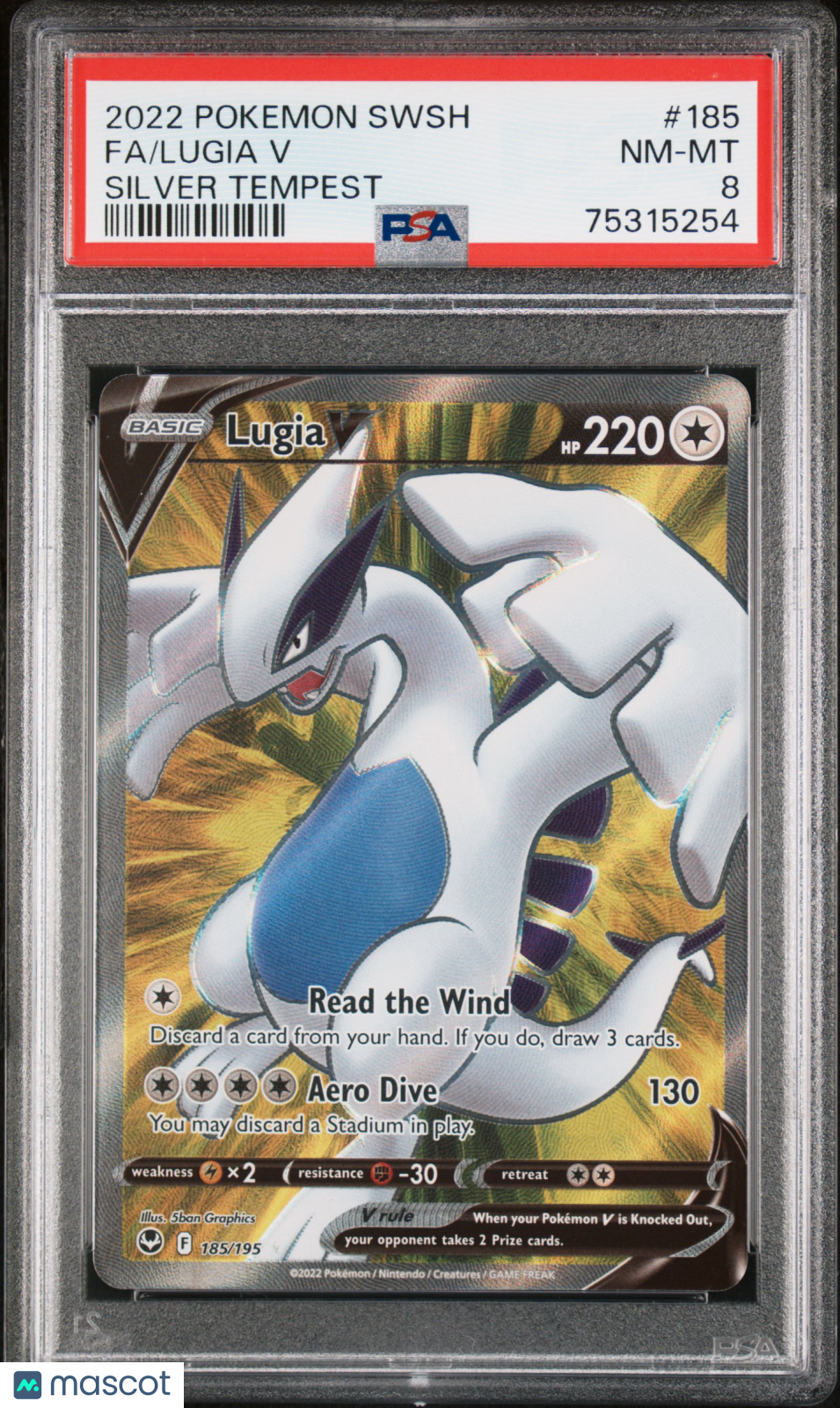 2022 Pokemon Sword & Shield Silver Tempest Lugia V #185 Fa Silver Tempest PSA 8