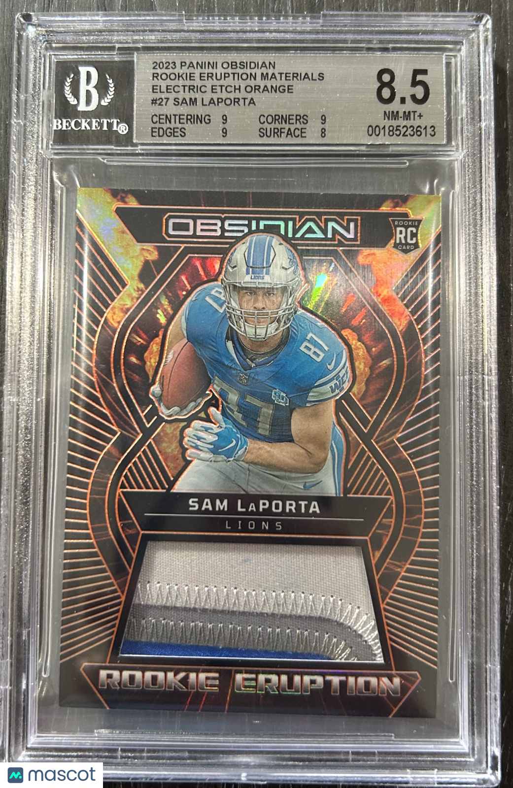 You are purchasing a 2023 Obsidian Rookie Eruption Materials Electric Etch Orange Sam LaPorta #27 BGS 8.5. You will receive the exact item in the photographs. Thank you for looking. Listed With Mascot.