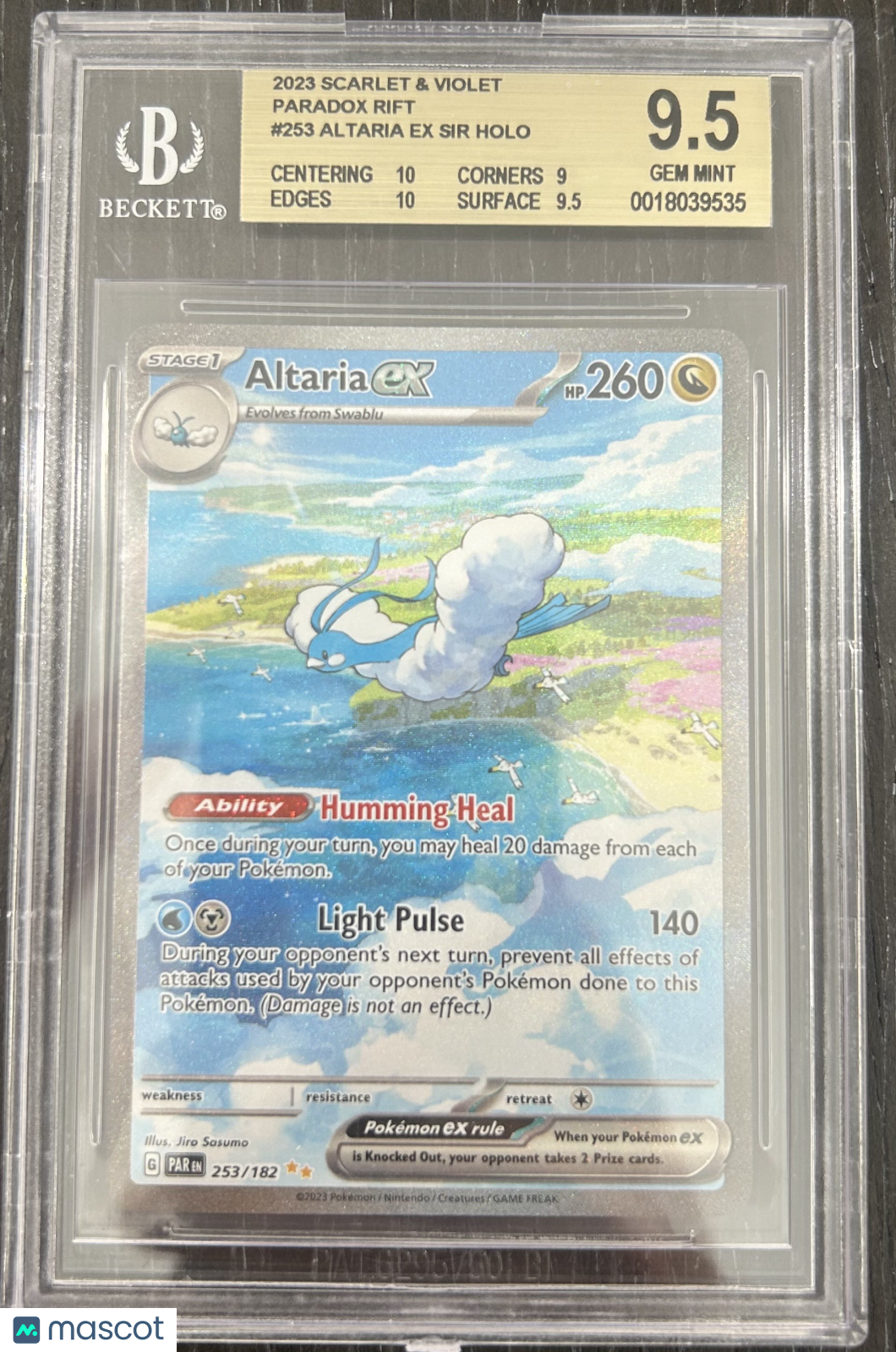 You are purchasing a 2023 Pokemon Scarlet and Violet Paradox Rift Altaria ex SIR HOLO #253 BGS 9.5. You will receive the exact item in the photographs. Thank you for looking. Listed With Mascot.